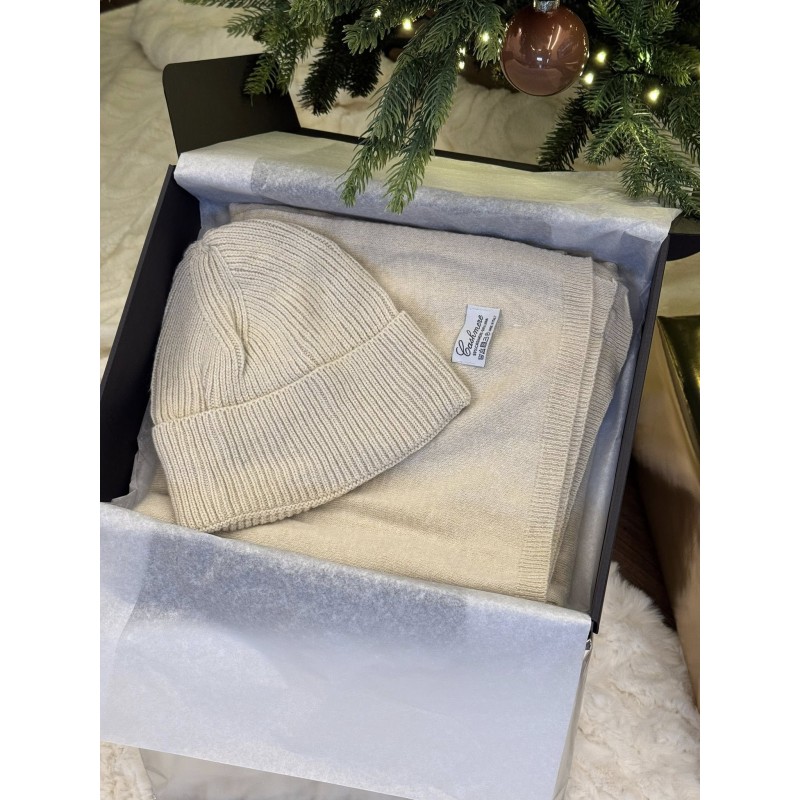 Komplet kaszmirowy czapka szalik jasny beż