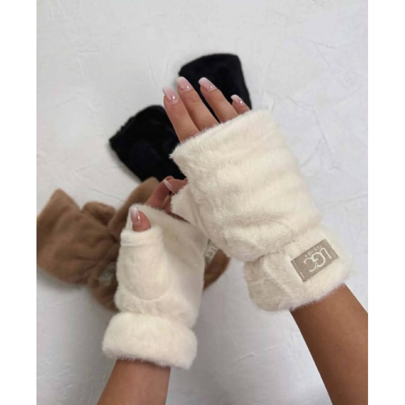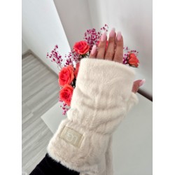 Rękawiczki z futerkiem białe śmietankowe