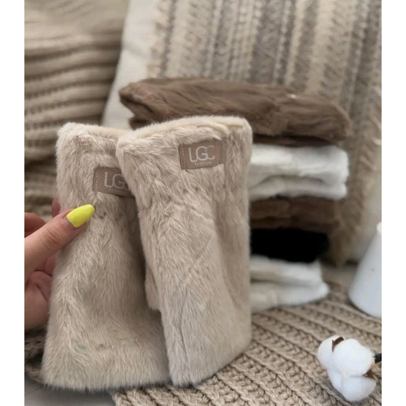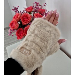 Rękawiczki z futerkiem beżowe