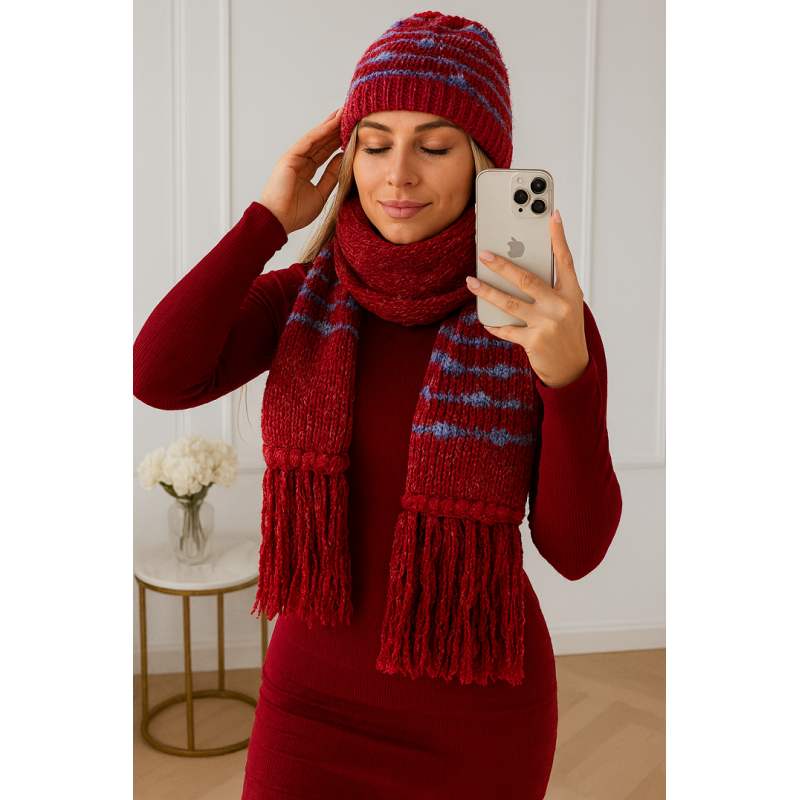 Komplet wełniany czapka i szalik bordo