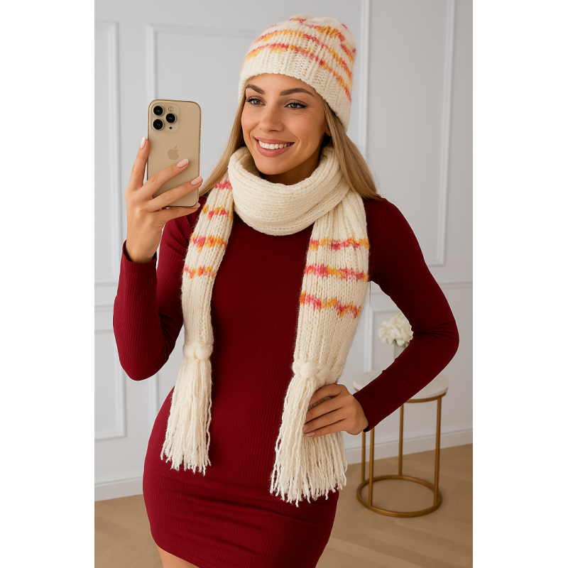 Komplet wełniany czapka i szalik biały multikolor