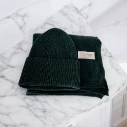 Komplet cashmere butelkowa zieleń czapka i szalik