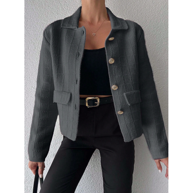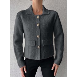 Jesienny dzianinowy żakiet szary