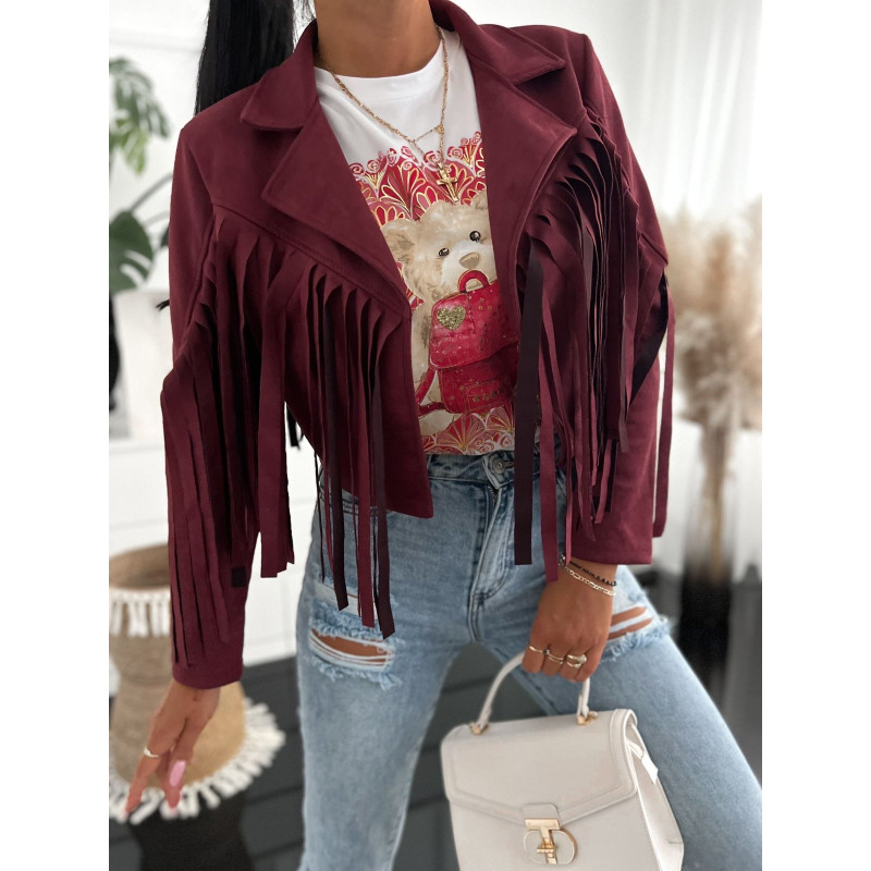 Kurtka narzutka zamszowa z fredzlami bordowa