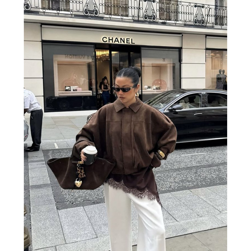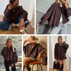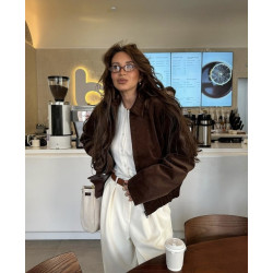 Viralowa kurtka bomberka zamszowa brązowa czekoladowa