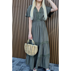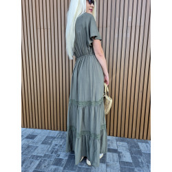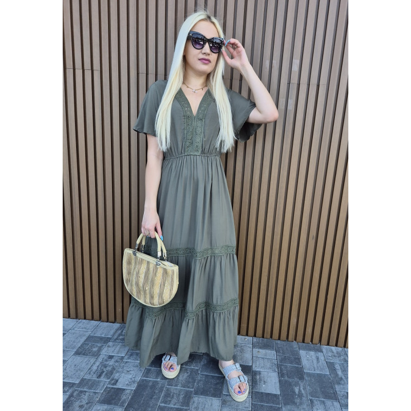 Sukienka boho maxi z koronką khaki
